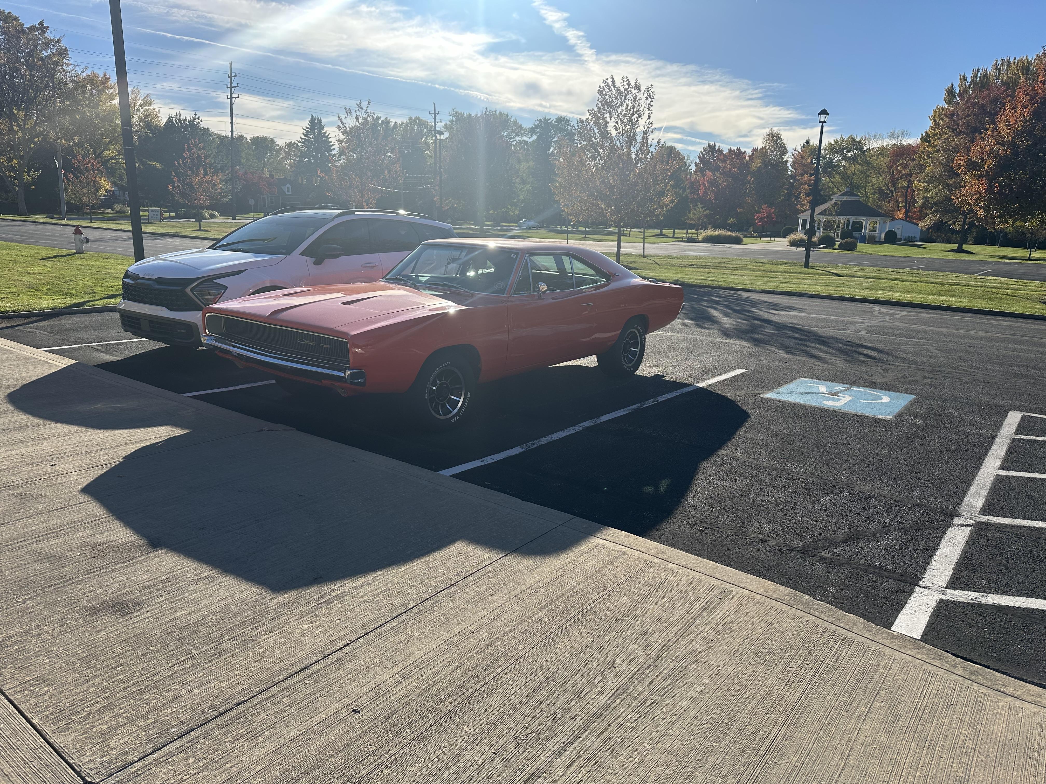 Rob Hall Posted 54 minutes ago Posted 54 minutes ago On my afternoon walk saw the orange ‘68 Charger again. Looks clean and straight, side marker lights removed. 1