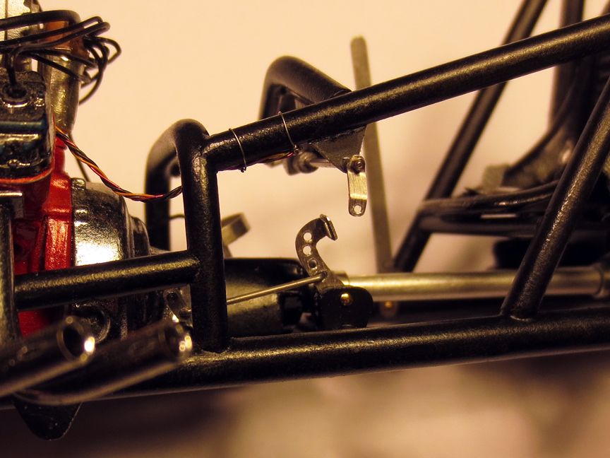 gasser59 Posted October 12, 2015 Author Posted October 12, 2015 Here's a couple better shots of the left side pedal since the other one was blurry. Also completed the steering arm and linkage rod as it comes out of the cockpit. And a shot of the almost complete chassis. Still have the steering wheel and tins to do. In a couple of the reference pics, there's some bracketry coming out of the rear of the frame that holds the parachute and a push bar, I imagine. Still working out the details on that.