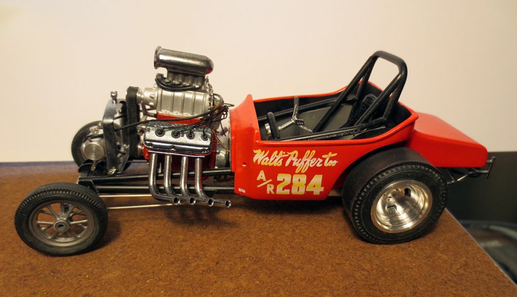 gasser59 Posted February 2, 2016 Author Posted February 2, 2016 While I wait for the number part of the decals to be reprinted and mailed, here's a preview of the rest of them in place. While working on the body fitment, the grip portion of the steering wheel was knocked off. I've tried twice to glue it back on but the small amount of contact area makes this a real challenge. I've decided to wait until everything else is done so that will be the last thing I do so I don't knock it off again. Hang with me, this'll get done.