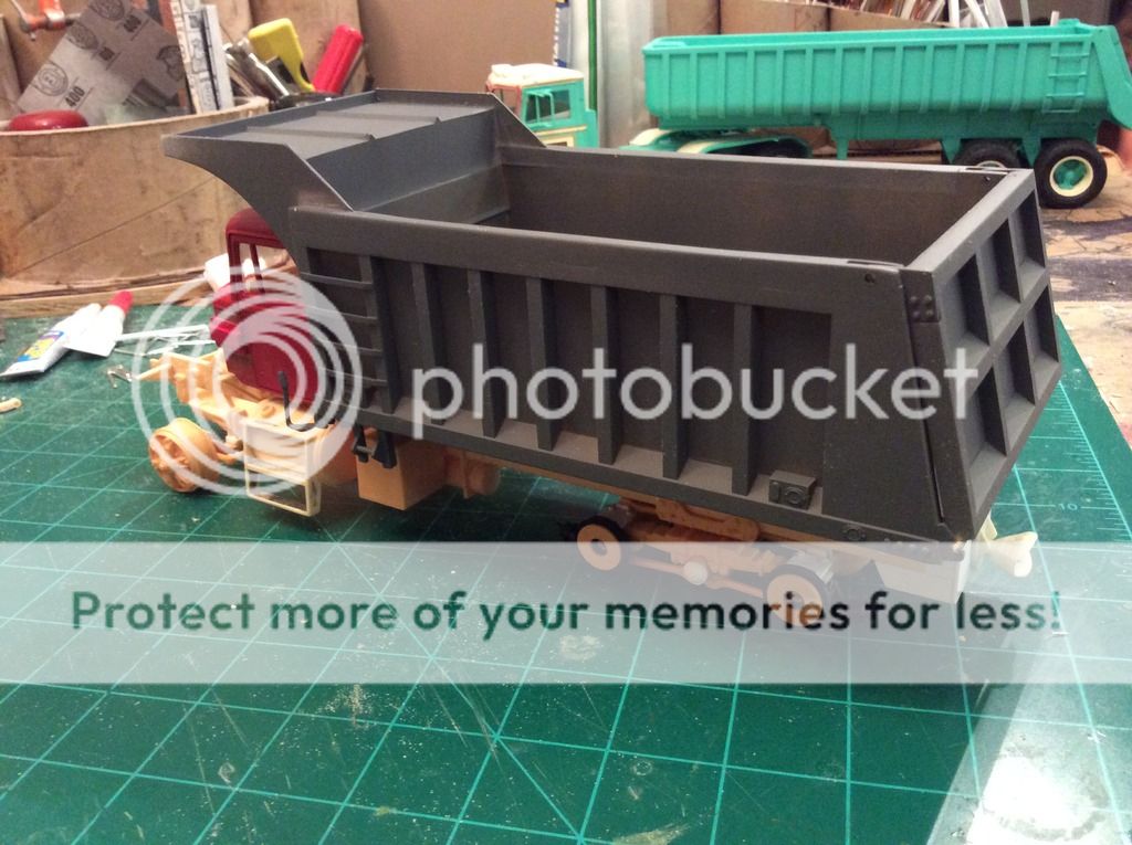 Superpeterbilt Posted August 13, 2015 Author Posted August 13, 2015 I've been steady working on the Autocar, but it hasn't been pic worthy. I've been sanding seams on parts, test fitting parts, and things like that. I robbed some brakes from an Italeri kit for the rear. I attatched the front axle and rock guard and some pieces of the steering. The hydraulic tank has been mounted. The bed and front bumper assembly have been primered. The resin wheels have been sanded to remove mould lines and uneven tread. The chassis is getting closer to primer.