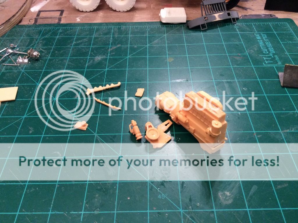 Superpeterbilt Posted August 22, 2015 Author Posted August 22, 2015 I started tooling around with the Cummins. It had been started already by the previous owner of the kit. It was a complete glue bomb. I tore it all back down, filed the necessary parts flat and square, sanded off seams, and made some modifications to resemble an actual NHC 250. The motor will be wired and plumbed as I have decided to hinge the hood for viewing. It was originally going to be curbside with the glue bomb engine. Here's a before Thats all for tonight