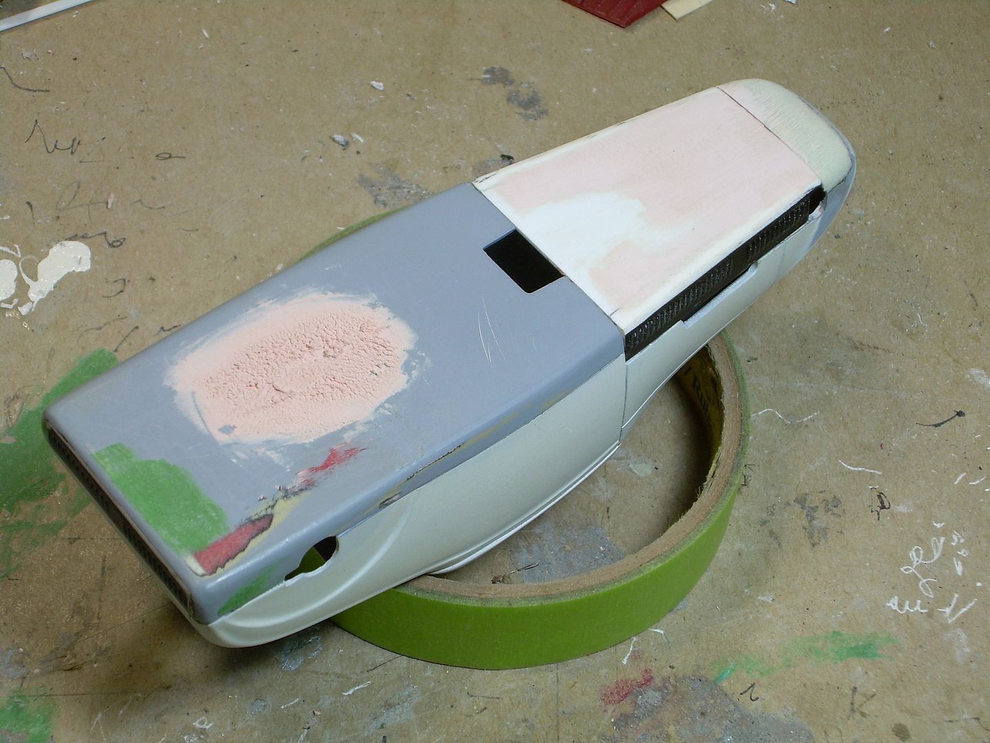 Ace-Garageguy Posted February 2, 2016 Author Posted February 2, 2016 (edited) Getting very close to paint. Had a little problem, though. The way I scratchbuilt the front of the thing was so fragile, it was beginning to crack during sanding. It was never intended to be permanent, but rather to last through paint and then be used as a plug for a set of molds. Only solution here was to coat the inside of the nose with a layer of fiberglass, which should impart enough strength to get me through paint, polishing, and mold-making. Edited February 2, 2016 by Ace-Garageguy