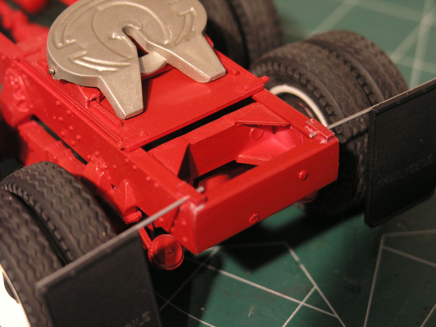 Old Buckaroo Posted December 4, 2015 Author Posted December 4, 2015 Gator & Gino - Thank you ! Last progress pic for this one. Mudflaps I have my own battles with them quite often. I made a flap bracket out of three pieces of styrene to hold a piece of aluminum wire. The idea is the wire will bend if contacted and it slips right out to re-straighten it or remove the flaps completely for travel. The finial pics are now "Under Glass" Thank you for following this one.